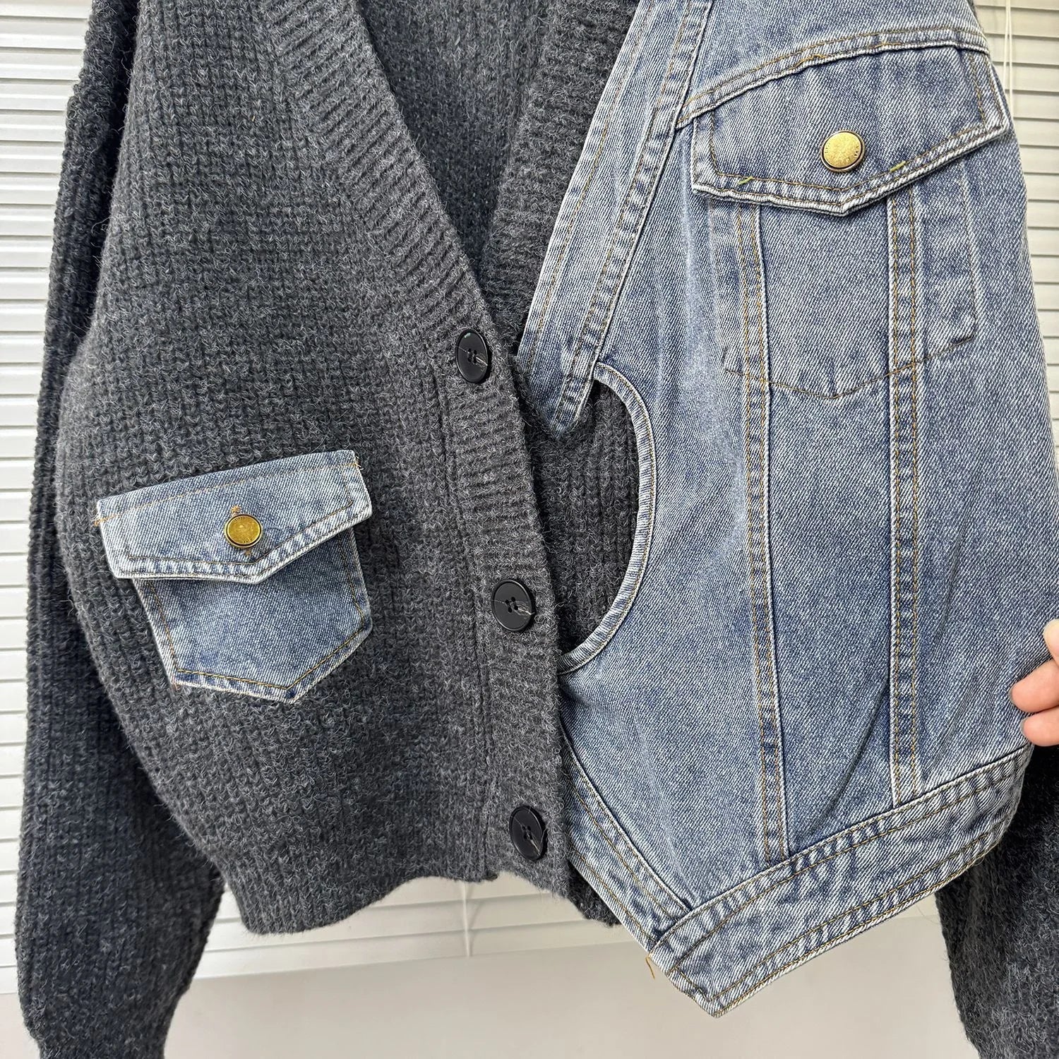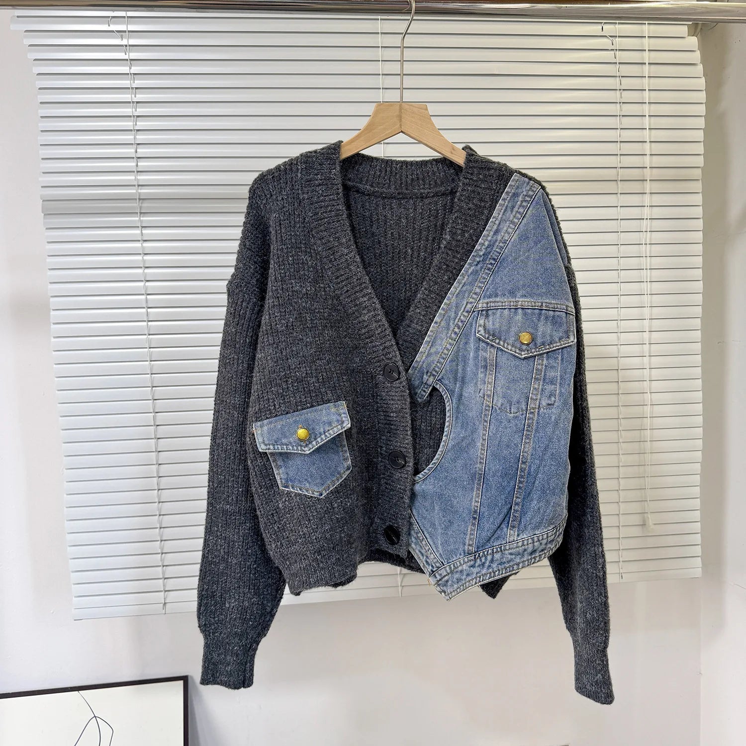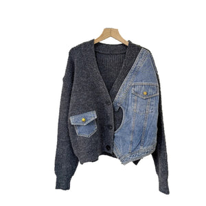Embrace cozy, eclectic style with this Women’s Denim Patchwork Knit Cardigan, a casual V-neck pullover perfect for autumn and winter. Crafted from a soft 160-gram polyester-cotton blend with a 9-gauge knitted weave, this cardigan features a garment-dyed finish and denim patchwork accents for a vintage-inspired, irregular loose fit. Its breathable, lightweight fabric ensures all-day comfort, while the full-length sleeves and relaxed silhouette make it ideal for layering over jeans, skirts, or trousers. Perfect for casual outings or smart-casual looks, this cardigan blends unique texture with effortless versatility.
