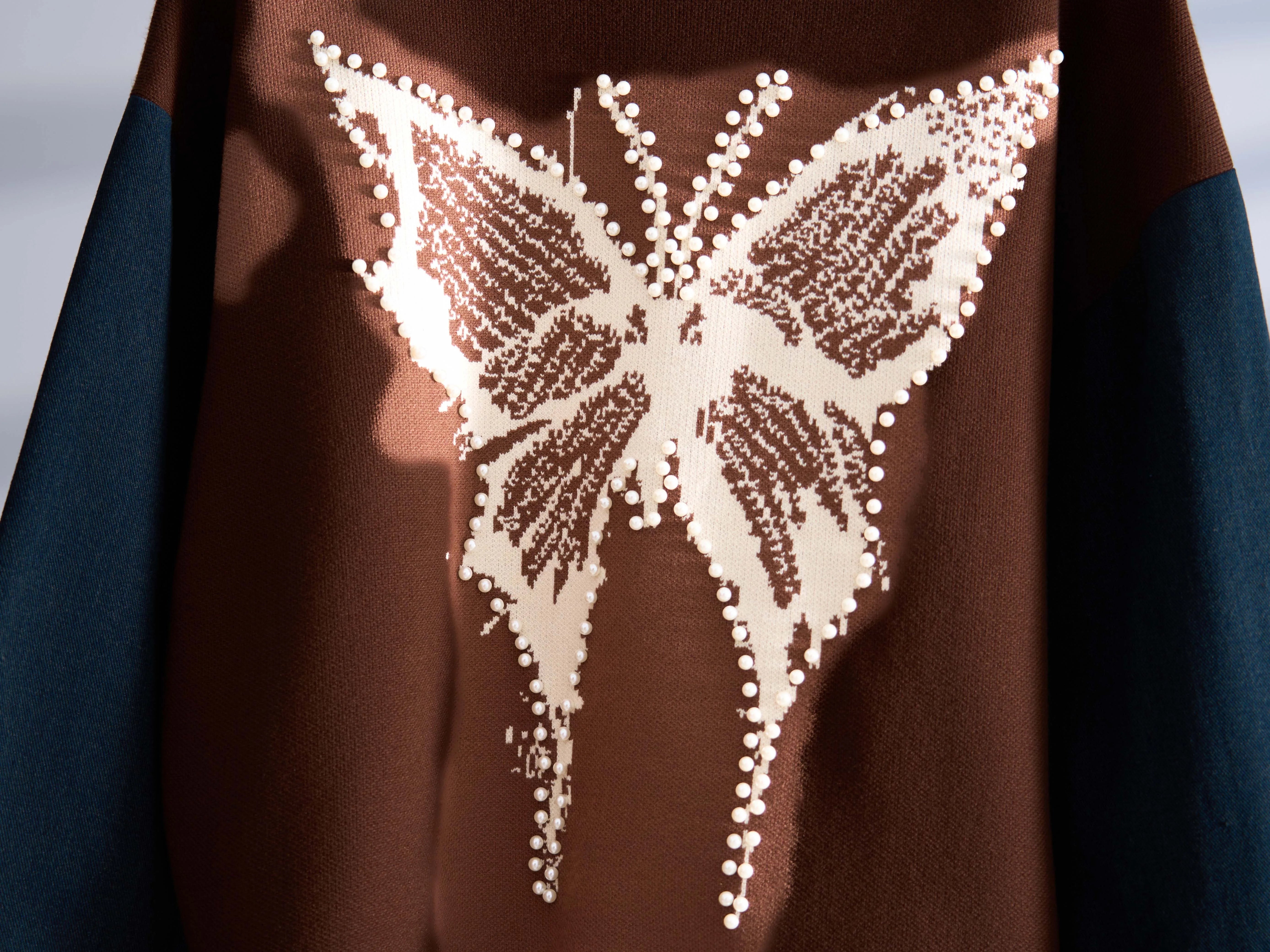 Unique Patchwork Design: O-neck with denim patches and beaded accents for vintage flair.