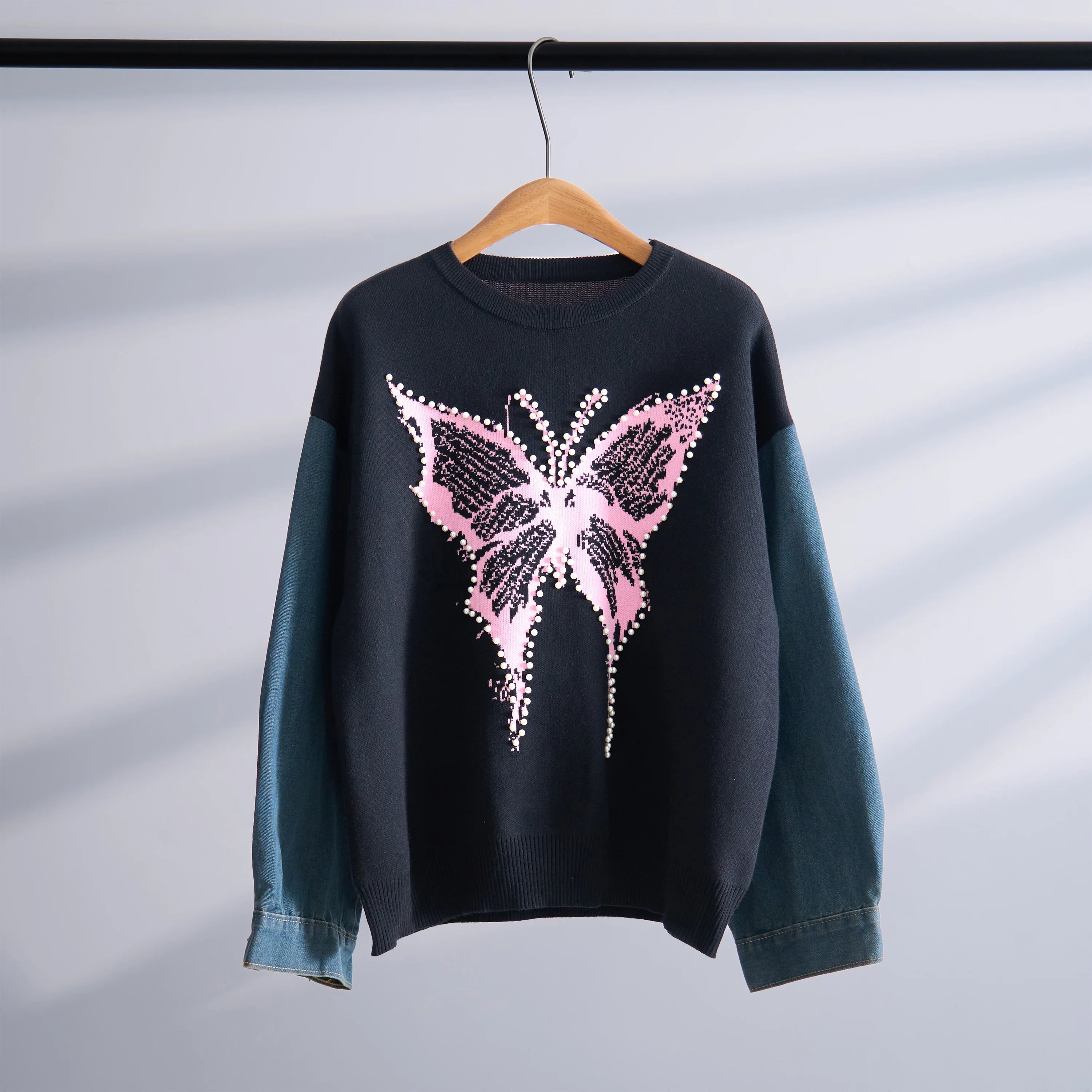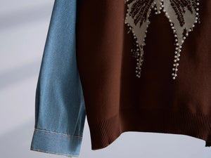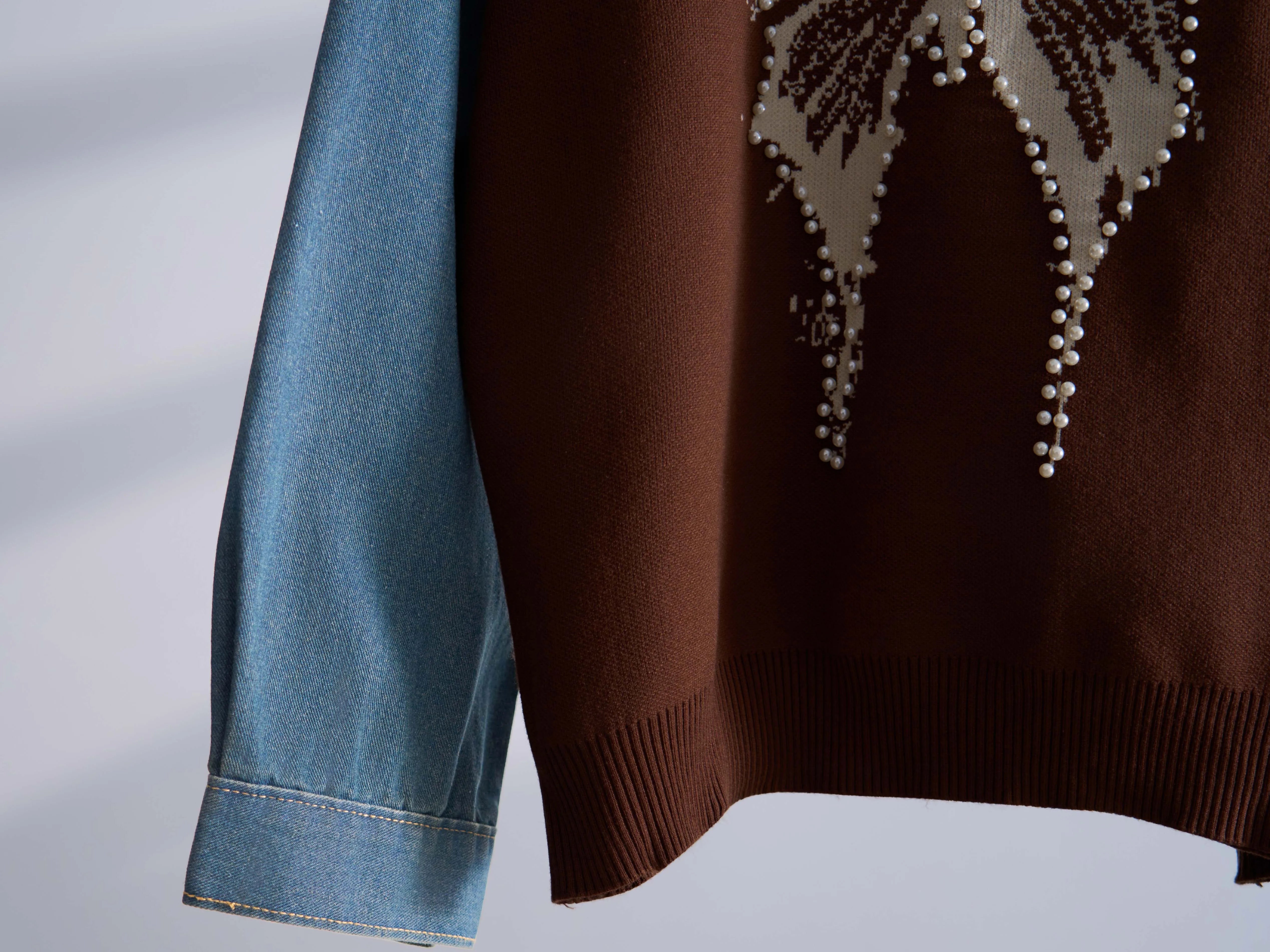 Embrace cozy, eclectic style with this Women’s Denim Patchwork Knit Sweater, a thick loose-fit pullover perfect for autumn and winter. Crafted from a premium 160-gram polyester-cotton blend with a 9-gauge knitted weave, this sweater features a garment-dyed O-neck design, denim patchwork accents, and delicate beaded details for a unique, vintage-inspired look. Its breathable, easy-to-maintain fabric ensures all-day comfort, while the full-length regular sleeves and moderate warmth make it ideal for layering over tees or pairing with jeans. Perfect for casual outings or smart-casual settings, this pullover blends timeless charm with modern versatility.