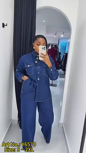 Upgrade your seasonal style with this chic denim set. Order now for effortless fall elegance!