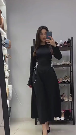 Elegant A-Line Design: O-neck and full sleeves with bandage-style accents for timeless style.