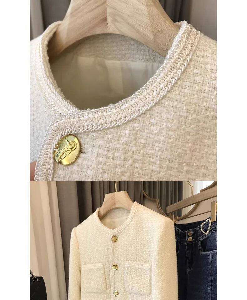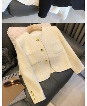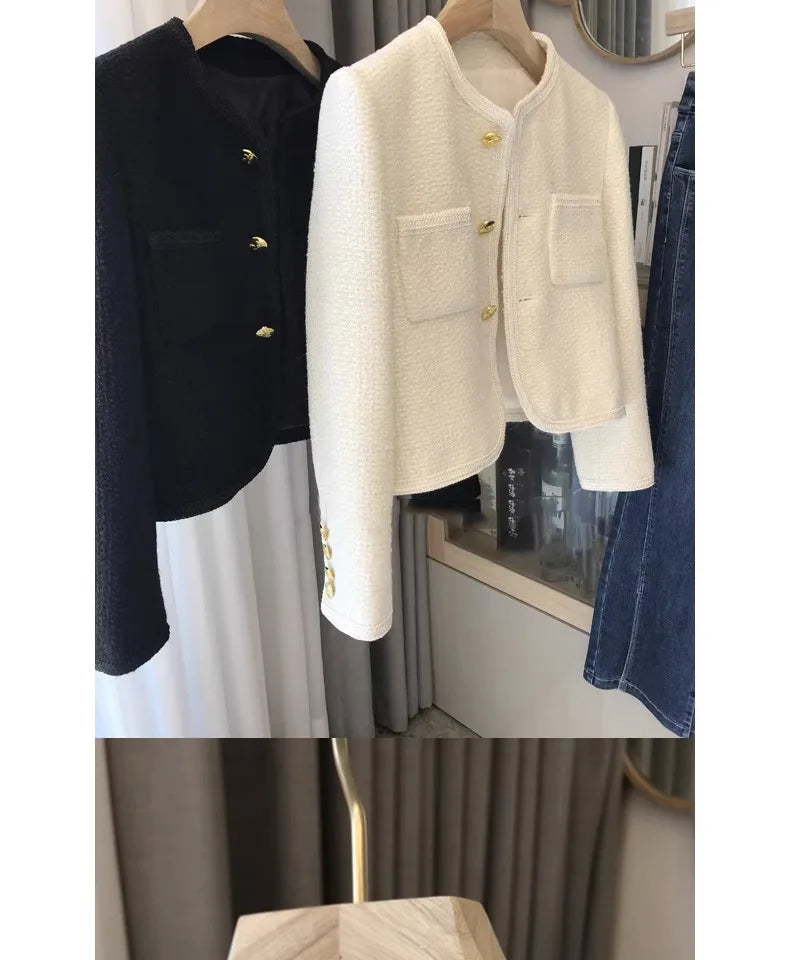 Elevate your wardrobe with this Women’s Wool Blazer Jacket, a casual yet elegant tweed suit coat designed for spring and autumn 2025. Crafted from a premium woolen tweed with a durable polyester shell and 100% polyester filling, this single-breasted blazer offers a soft, lightweight feel with a knitted weave for flexibility and refined texture. Its loose-fit silhouette and standard thickness ensure breathable comfort, perfect for layering over dresses or tees for office wear, casual outings, or chic everyday looks. This versatile coat blends timeless sophistication with cozy warmth, making it a must-have for transitional seasons.