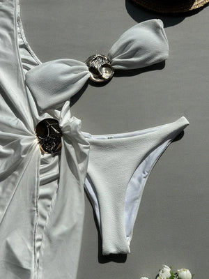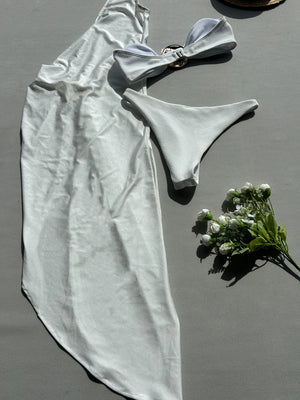 Your summer wardrobe just leveled up. This 3-piece bandeau bikini set features a strapless top, a cheeky Brazilian bottom, and a matching cover-up — giving you the perfect blend of style, comfort, and versatility. Whether you're poolside or beach-bound, this set has everything you need to slay the sun in style.