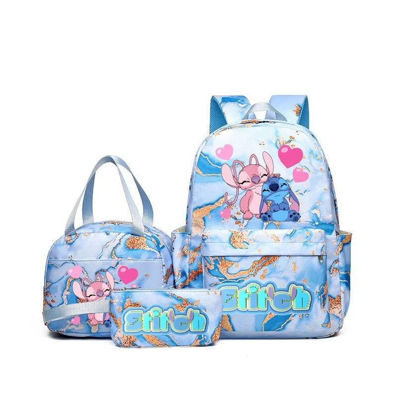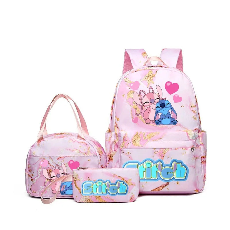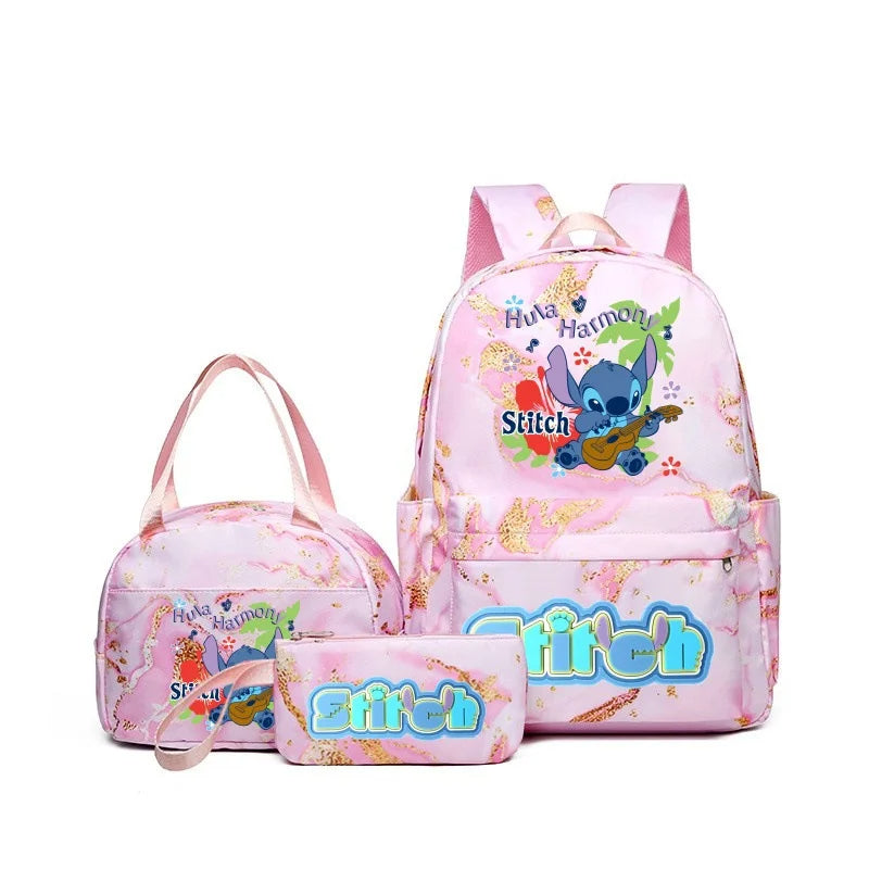 Get ready for school in style with this 3-piece backpack set, including a spacious main backpack, a matching pencil case, and a practical lunch bag. Made from durable polyester with a fun cartoon print, this set is perfect for carrying books, stationery, and snacks all in coordinated fashion.