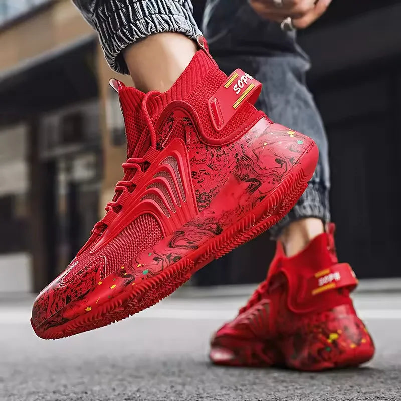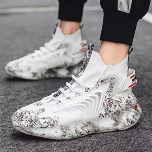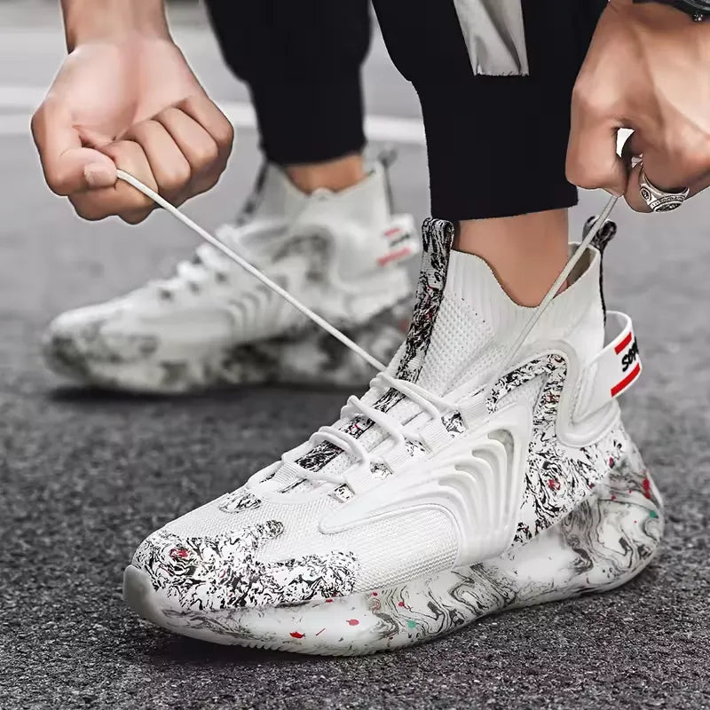 Fashiontrend Men Walking Shoes High Top Lace-up Casual Men Sneakers Antislip Light-weight