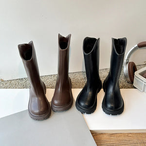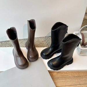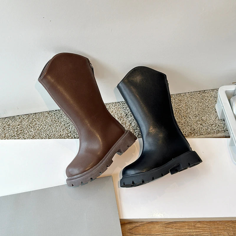 Keep your girl stylish and warm with these high-quality knee-high boots, perfect for winter. Crafted from microfiber leather with a zipper-up design, they offer arch support and a trendy solid-color look for all-day comfort.