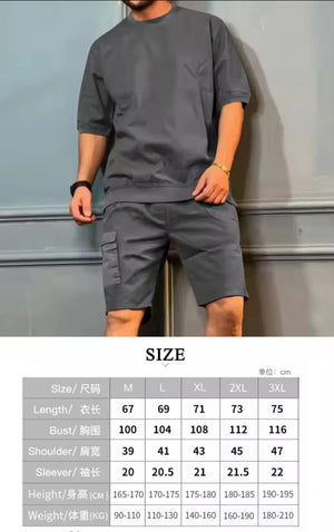 Upgrade your activewear with this stylish and functional men's sports set. Designed for maximum comfort and performance, this two-piece outfit includes a short-sleeve t-shirt and matching shorts, making it ideal for workouts, running, gym sessions, or casual lounging. The breathable, quick-dry fabric keeps you cool, while the solid color design adds a modern, athletic look.
