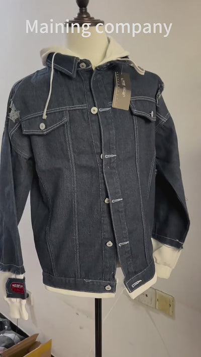 Rock bold street style with this men’s hip hop denim bomber jacket, featuring a striped pattern and cozy hood. Its knitted weave and regular fit offer versatile comfort for any casual occasion.