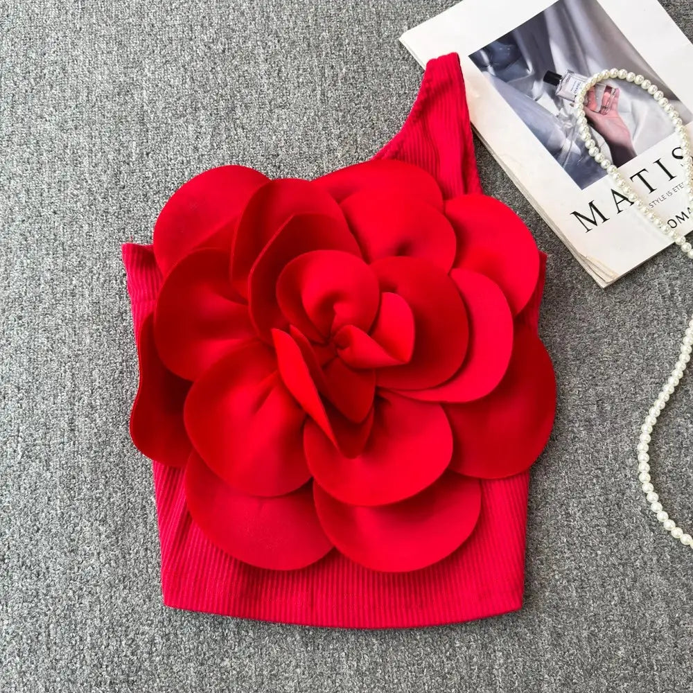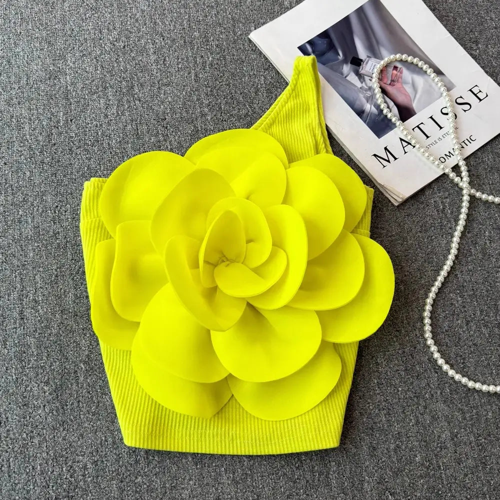 Floral One Shoulder Backless Crop Top