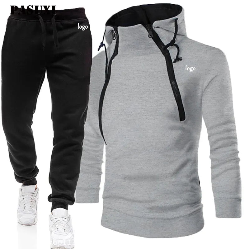 Solid Mens Gym Sports Long Sleeve Casual Tooling 2 Piece Sets Sportswear Hip Hop Sweatshirts Men Sets