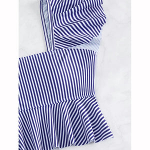 Home Striped Ruffle High Waist Backless Bikini Swimsuit