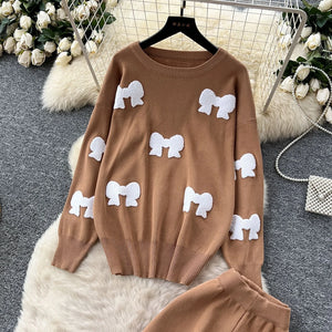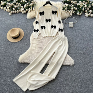 Bow Print Casual Two-Piece Set