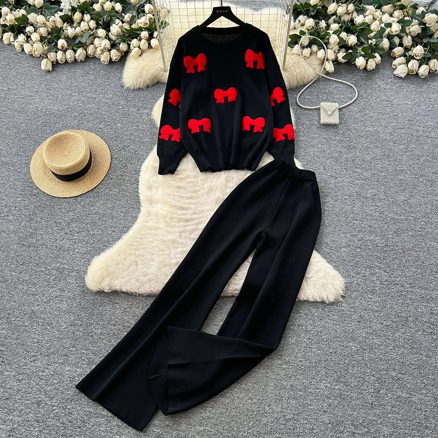 Stay effortlessly chic with our Bow Print Casual Two-Piece Set, blending playful charm with everyday comfort.