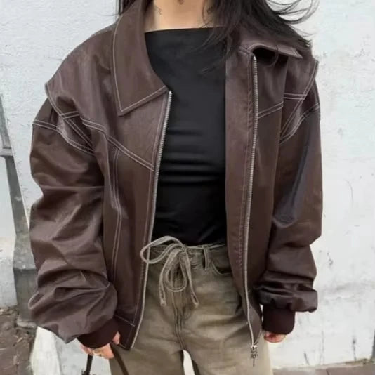 Women New Fashion Loose Long-sleeved Retro American Motorcycle Jacket