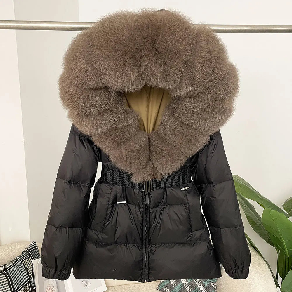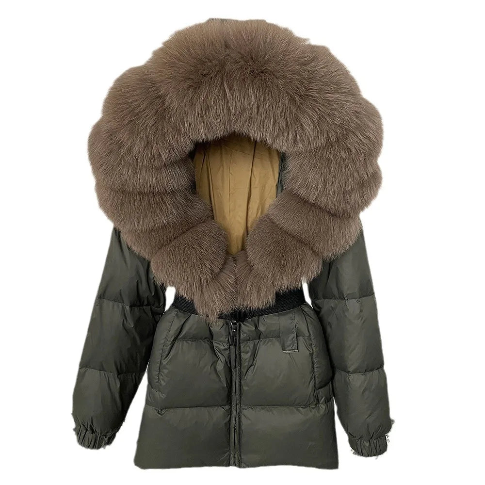Women Puffer Down JacketnReal Fox Fur Hooded Thick Warm coat for winter season