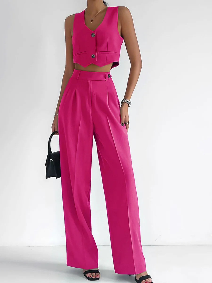 Autumn Elegance Awaits! Slip into this chic vest set for timeless style. Order now and shine this fall season!