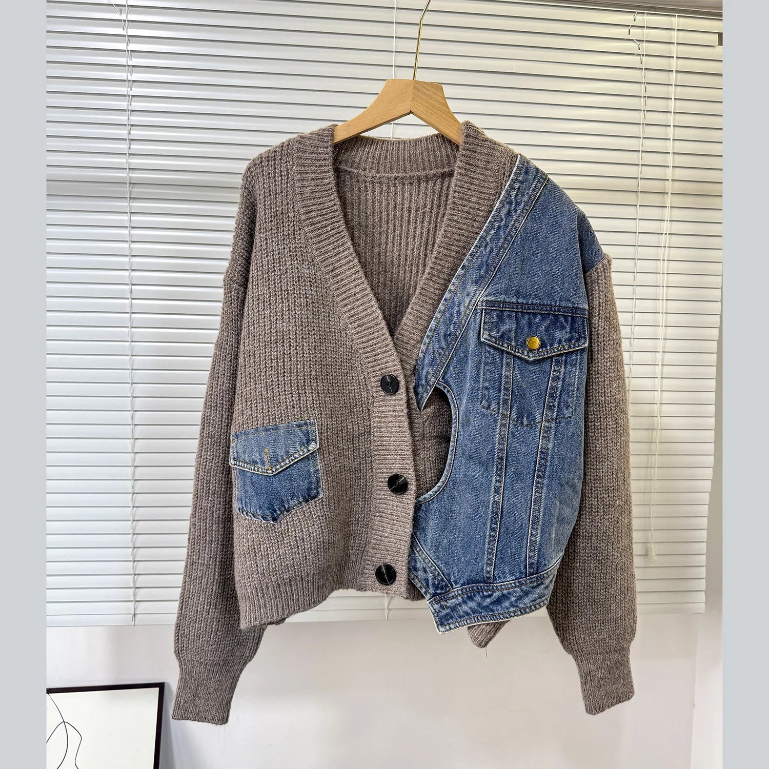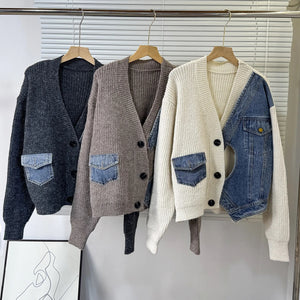 Women’s Denim Patchwork Knit Cardigan