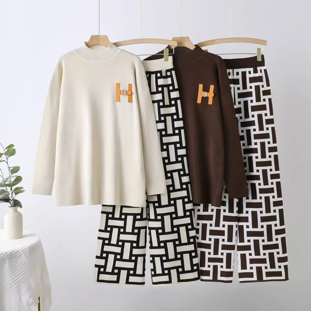 Embrace effortless sophistication with this Women’s Knitted Long Sleeve Top & Skirt Co-Ord Set, a plus-size-friendly outfit designed for autumn comfort and style. Crafted from 100% premium polyester with a yarn-dyed knitted texture, this regular-fit set features a crew neck long-sleeve top and a matching midi skirt, showcasing a modern geometric pattern. The thick, 800-gram (combined) fabric provides warm yet breathable coverage, while its washable, fade-resistant properties ensure lasting vibrancy. Perfect for casual outings, work, or cozy evenings, this set pairs seamlessly with boots or sneakers for a versatile, elegant look.