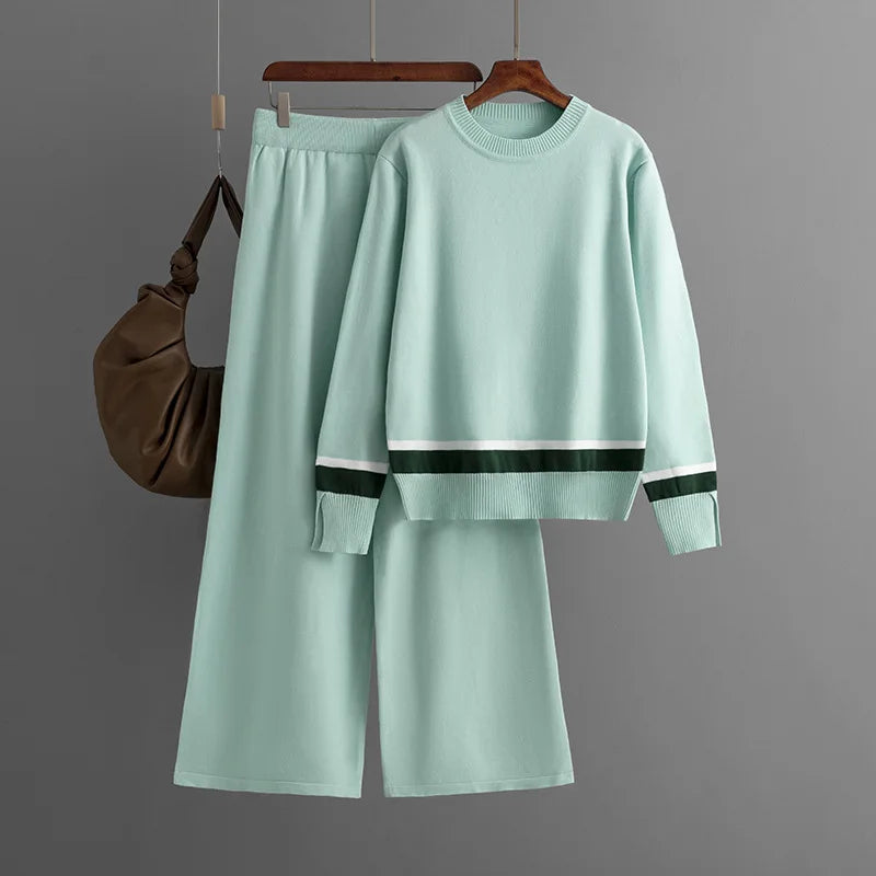 Minimalist Design: O-neck sweater and wide-leg pants in solid color for versatile styling.