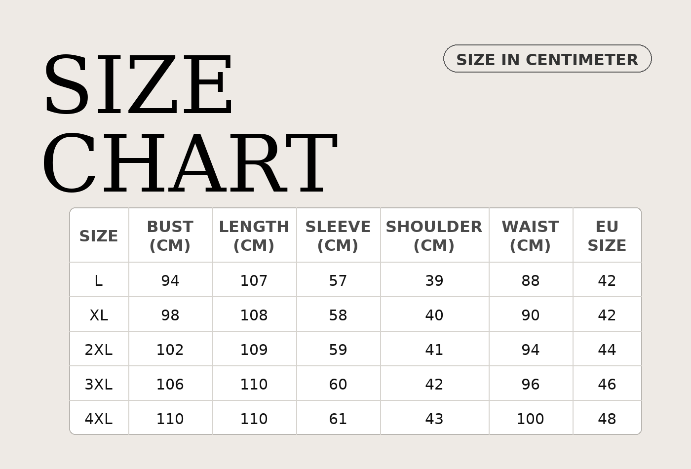 S, M, L, XL, 2XL, 3XL, 4XL |
