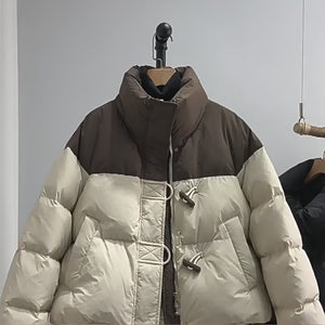 Elegant Parka Design: Stand collar and solid color for minimalist sophistication.