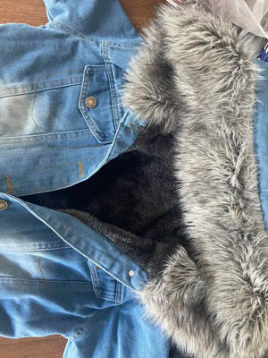 Embrace cozy style with this Women’s Winter Oversized Denim Jacket, a thick, plush-lined jean coat designed for cold-weather comfort. Crafted from a durable acetate-cotton blend with a woven, yarn-dyed denim finish, this jacket features a soft cotton liner for breathable warmth and a detachable hooded collar for versatile looks. The single-button closure and solid-color design offer timeless appeal, while anti-wrinkle and anti-shrink properties ensure lasting freshness. Perfect for layering over sweaters or tees, this regular-fit, long-sleeve jacket is ideal for casual winter outings, travel, or everyday chic.