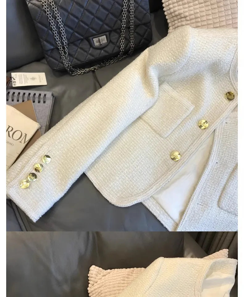 Elevate your wardrobe with this Women’s Wool Blazer Jacket, a casual yet elegant tweed suit coat designed for spring and autumn 2025. Crafted from a premium woolen tweed with a durable polyester shell and 100% polyester filling, this single-breasted blazer offers a soft, lightweight feel with a knitted weave for flexibility and refined texture. Its loose-fit silhouette and standard thickness ensure breathable comfort, perfect for layering over dresses or tees for office wear, casual outings, or chic everyday looks. This versatile coat blends timeless sophistication with cozy warmth, making it a must-have for transitional seasons.