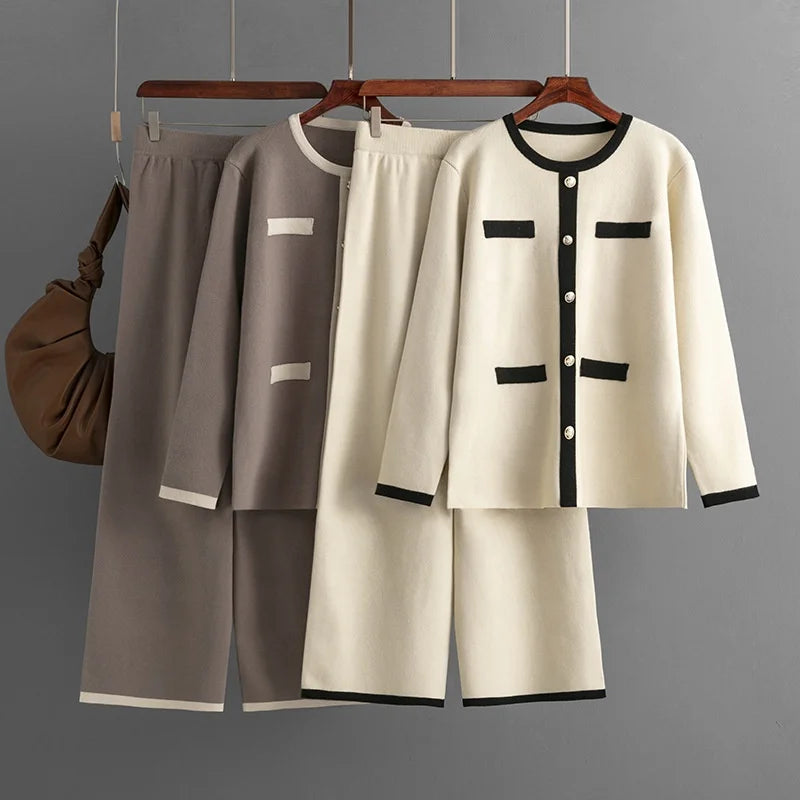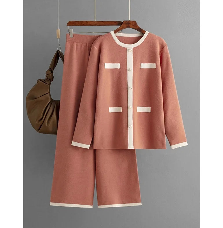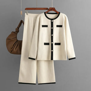 Women set Long Sleeve Top High Waist Wide Leg Knitted Trousers for winter season