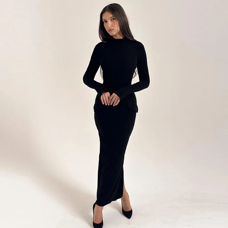Crafted from a stretchy spandex-polyester blend, this dress hugs your curves beautifully while offering all-day comfort. The solid color design, O-neckline, and long sleeves make it perfect for both party nights and vacation evenings.